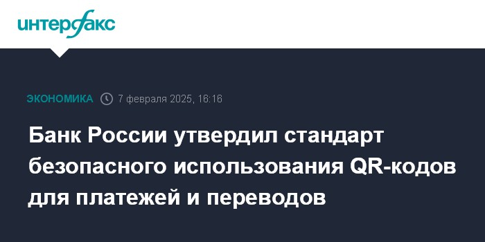 Москва. 7 февраля. INTERFAX.RU - Банк России определил правила безопасного использования QR-кодов для платежей переводов, соответствующий стандарт опубликован на сайте регулятора.