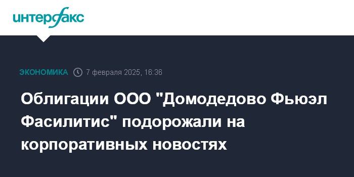 Облигации ООО "Домодедово Фьюэл Фасилитис" подорожали на корпоративных новостях