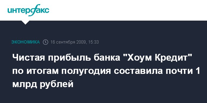 Москва. 16 сентября. INTERFAX.RU - "Хоум Кредит & Финанс Банк" (ХКФБ) представил сегодня отчетность по МСФО за шесть месяцев 2009 года. Несмотря на неблагоприятную ситуацию в экономике и общее падение потребительского спроса, банк добился чистой прибыли в 920 млн. рублей.