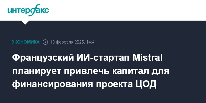 Москва. 10 февраля. INTERFAX.RU - Французский ИИ-стартап Mistral рассматривает возможность привлечения внешнего финансирования, чтобы найти средства для оплаты проекта центра обработки данных в стране.