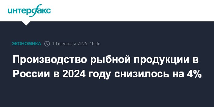 Производство рыбной продукции в России в 2024 году снизилось на 4%