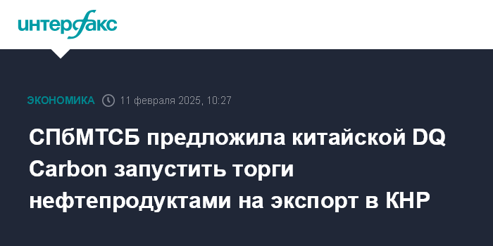 СПбМТСБ предложила китайской DQ Carbon запустить торги нефтепродуктами на экспорт в КНР