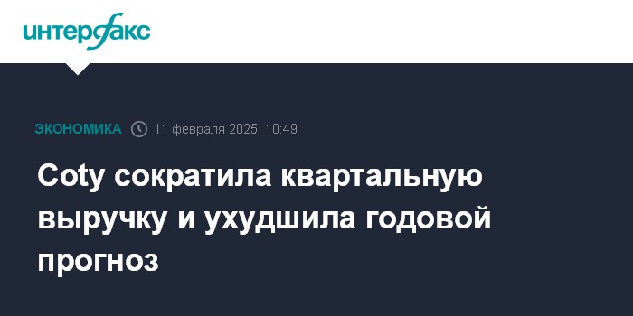 Москва. 11 февраля. INTERFAX.RU - Американский производитель косметики и парфюмерии Coty Inc. во втором квартале 2025 финансового года снизил выручку на 3,3%, а также ухудшил годовой прогноз, в том числе, из-за слабых продаж в Азии.