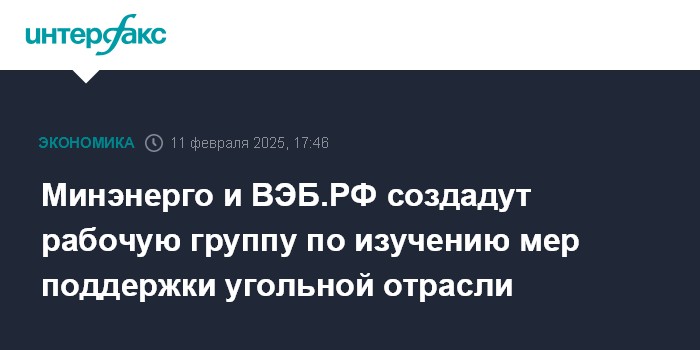 Москва. 11 февраля. INTERFAX.RU - Минэнерго РФ и ВЭБ.РФ приняли решение о создании профильной рабочей группы, в задачи которой войдет изучение возможных экономических и административных мер поддержки угольной отрасли, сообщило министерство.
