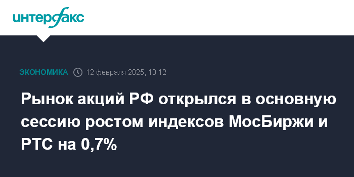 Рынок акций РФ открылся в основную сессию ростом индексов МосБиржи и РТС на 0,7%