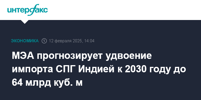 МЭА прогнозирует удвоение импорта СПГ Индией к 2030 году до 64 млрд куб. м