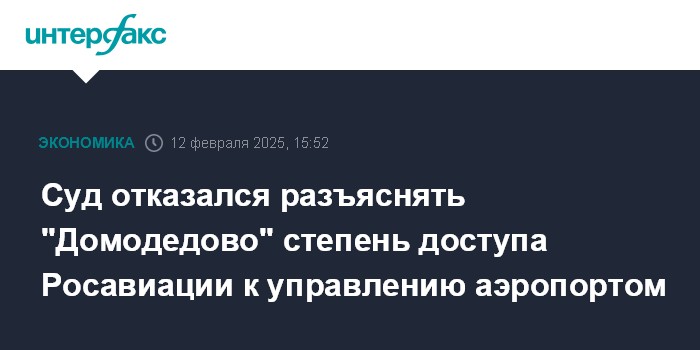 Москва. 12 февраля. INTERFAX.RU - Арбитражный суд Московской области отказался разъяснять МКООО "Эрпорт Менеджмент Компани Лимитед", под управлением которой находятся операционные компании "Домодедово", вопросы, связанные с доступом представителей Росавиации к хозяйственной деятельности аэропорта.