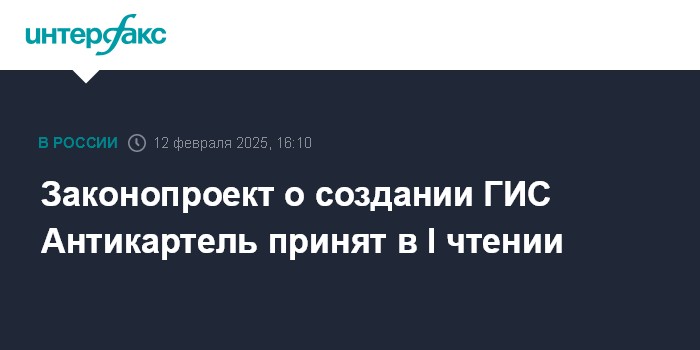 Москва. 12 февраля. INTERFAX.RU - Госдума приняла в первом чтении законопроект, который устанавливает правовые основы создания государственной информационной системы для предупреждения и выявления антиконкурентных соглашений (ГИС Антикартель).