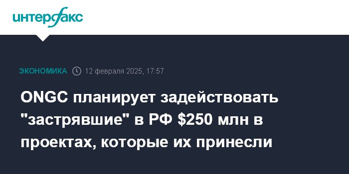 ONGC планирует задействовать "застрявшие" в РФ $250 млн в проектах, которые их принесли