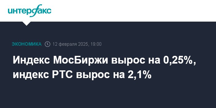 Индекс МосБиржи вырос на 0,25%, индекс РТС вырос на 2,1%