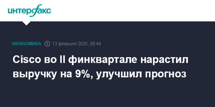 Москва. 13 февраля. INTERFAX.RU - Американский производитель сетевого оборудования Cisco Systems Inc. во втором квартале 2025 финансового года сократил чистую прибыль на 8%, но скорректированный показатель и выручка превзошли ожидания рынка.