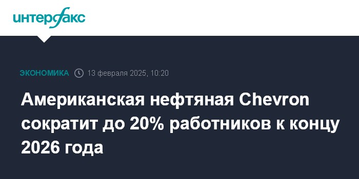 Американская нефтяная Chevron сократит до 20% работников к концу 2026 года