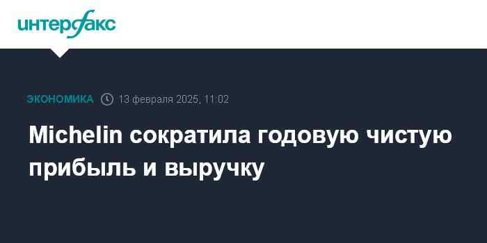 Москва. 13 февраля. INTERFAX.RU - Французская Compagnie Generale des Etablissements Michelin, один из ведущих мировых производителей автомобильных шин, по итогам 2024 года снизила чистую прибыль на 4,9% - до 1,89 млрд евро с 1,983 млрд евро годом ранее, сообщается в отчетности компании.