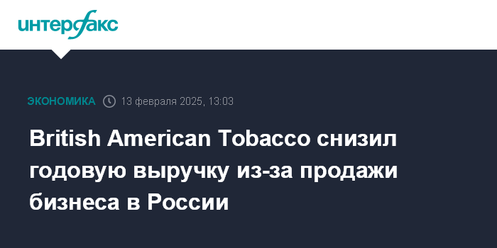 Москва. 13 февраля. INTERFAX.RU - Табачный концерн British American Tobacco (BAT) завершил 2024 год с доналоговой прибылью.