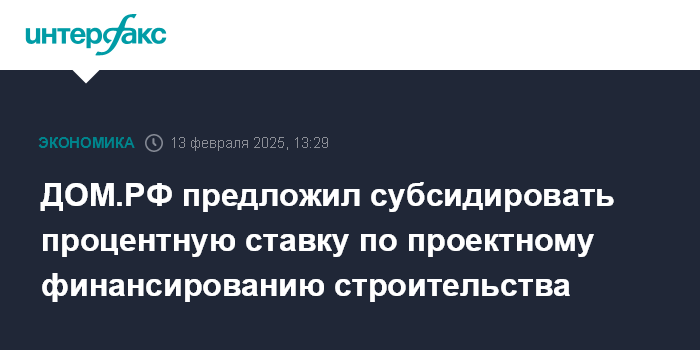 Москва. 13 февраля. INTERFAX.RU - АО "ДОМ.РФ" направило в профильные ведомства предложение субсидировать процентную ставку для проектного финансирования строительства жилья с вводом в 2026 году и позднее. Об этом сообщил "Интерфаксу" заместитель председателя правления банка "ДОМ.РФ" Антон Медведев.