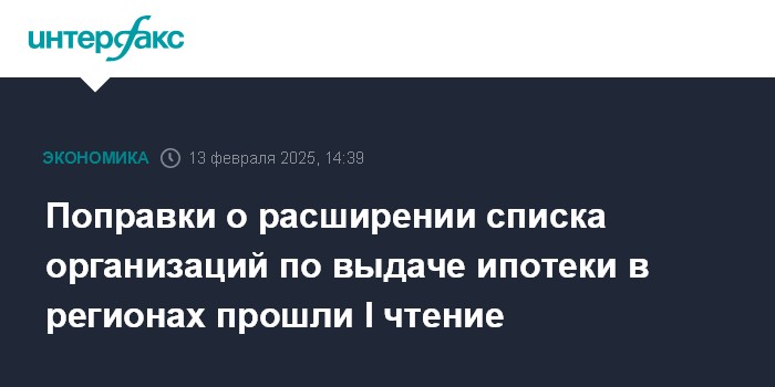 Поправки о расширении списка организаций по выдаче ипотеки в регионах прошли I чтение