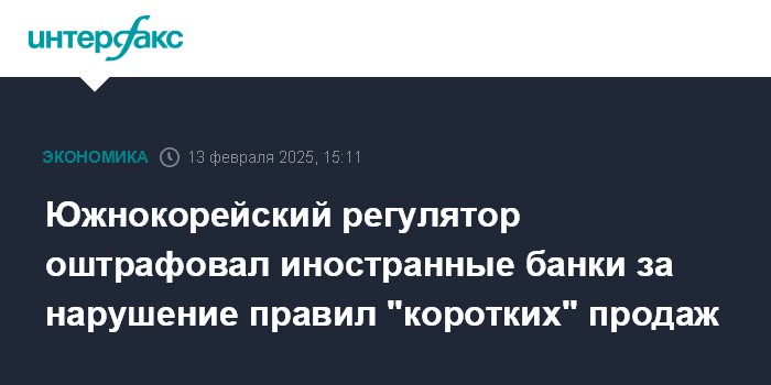 Южнокорейский регулятор оштрафовал иностранные банки за нарушение правил "коротких" продаж
