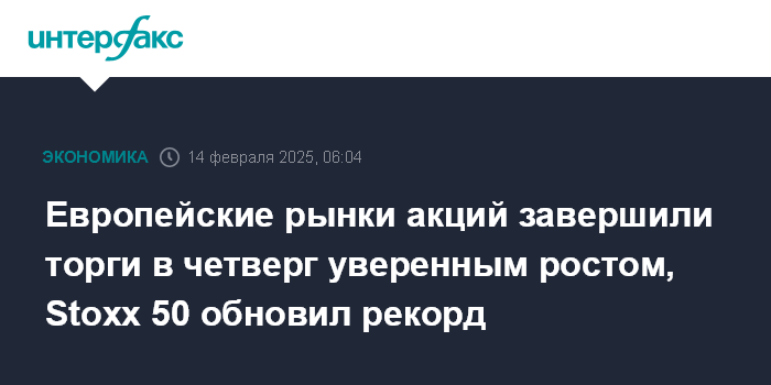 Европейские рынки акций завершили торги в четверг уверенным ростом, Stoxx 50 обновил рекорд