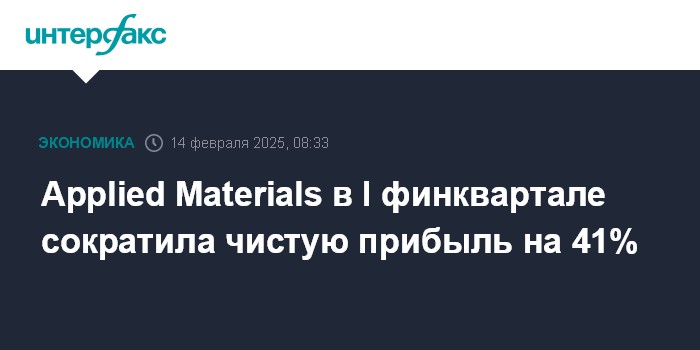 Москва. 14 февраля. INTERFAX.RU - Американская Applied Materials, один из крупнейших мировых производителей оборудования для выпуска чипов, в первом квартале 2025 финансового года сократила чистую прибыль на 41% и дала слабый прогноз выручки на текущий период.