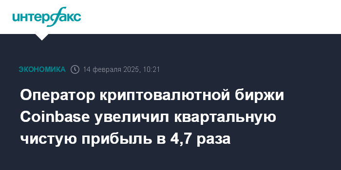 Москва. 14 февраля. INTERFAX.RU - Coinbase Global, оператор крупнейшей в США криптовалютной биржи, увеличила чистую прибыль в четвертом квартале 2024 года в 4,7 раза, выручку - в 2,4 раза.