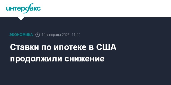 Москва. 14 февраля. INTERFAX.RU - Ставки долгосрочных ипотечных кредитов в США на минувшей неделе вновь продемонстрировали слабое снижение.