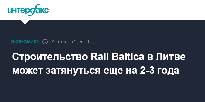 Москва. 14 февраля. INTERFAX.RU - Строительство в Литве трансграничной ж/д линии европейской колеи Rail Baltica, которое сейчас планируется закончить к 2030 году, может затянуться еще на 2-3 года, считает глава компании Rail Baltica statyba (отвечает за строительство магистрали в Литве) Арениюс Яцкус. Он заявил об этом в Сейме, его выступление транслировалось в YouTube.