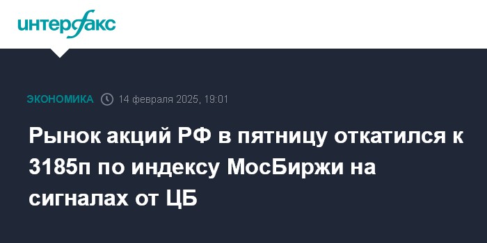 Рынок акций РФ в пятницу откатился к 3185п по индексу МосБиржи на сигналах от ЦБ