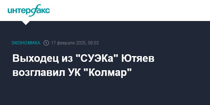 Выходец из "СУЭКа" Ютяев возглавил УК "Колмар"