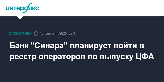 Москва. 17 февраля. INTERFAX.RU - Банк "Синара" планирует стать оператором по выпуску цифровых финансовых активов (ЦФА), рассчитывает пройти все необходимые процедуры в первой половине 2025 года, сообщил на заседании совета Торгово-промышленной палаты России директор по развитию ЦФА банка Илья Хабаров. Об этом пишут "Ведомости".