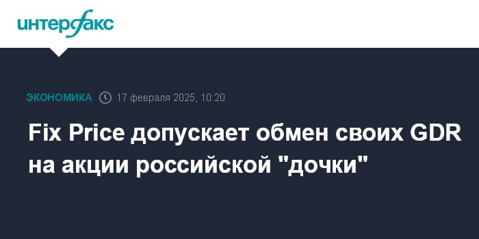 Москва. 17 февраля. INTERFAX.RU - Группа Fix Price plc в 2025 году может запустить процесс обмена своих GDR на акции АО "Фикс Прайс", сообщила группа.
