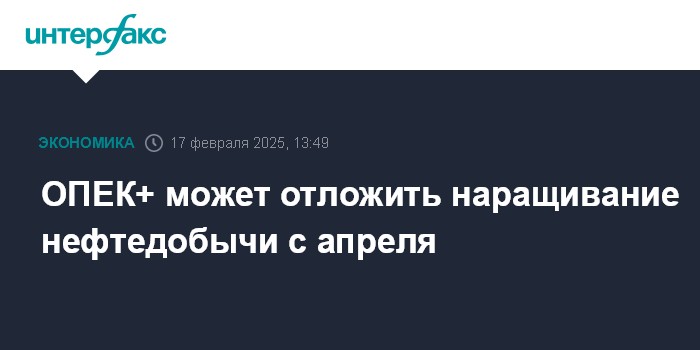 Москва. 17 февраля. INTERFAX.RU - Страны ОПЕК+ рассматривают решение отложить наращивание нефтедобычи с апреля, несмотря на призывы президента США Дональда Трампа увеличить добычу, сообщает Bloomberg со ссылкой на нескольких делегатов.