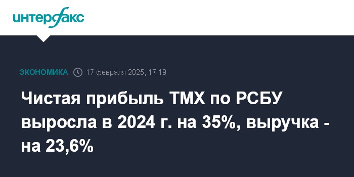 Чистая прибыль ТМХ по РСБУ выросла в 2024 г. на 35%, выручка - на 23,6%