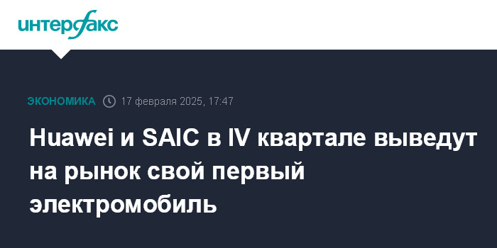 Москва. 17 февраля. INTERFAX.RU - Китайские Huawei и SAIC Motor в четвертом квартале планируют вывести на рынок первую совместную модель электромобилей, пишет Yicai со ссылкой на независимые источники.