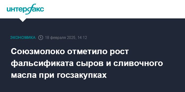 Москва. 18 февраля. INTERFAX.RU - Национальный союз производителей молока (Союзмолоко) отмечает рост фальсифицированной продукции, прежде всего сыров и сливочного масла, в сфере госзакупок. Он предлагает законодательно закрепить присоединение системы госзакупок к ФГИС "Меркурий" (прослеживает продукцию, подлежащую государственному ветеринарному контролю).