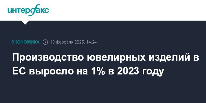 Москва. 18 февраля. INTERFAX.RU - Производство ювелирных изделий в странах Европейского союза в 2023 году составило 4,363 млрд евро, что на 1% превысило показатель 2022 года, говорится в сообщении статистического управления ЕС.