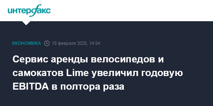 Москва. 18 февраля. INTERFAX.RU - Lime, оператор американского сервиса аренды электрических велосипедов и скутеров, продемонстрировал активный рост объема бронирований и EBITDA в 2024 году, что может ускорить подготовку компании к первичному размещению акций, сообщает Bloomberg.