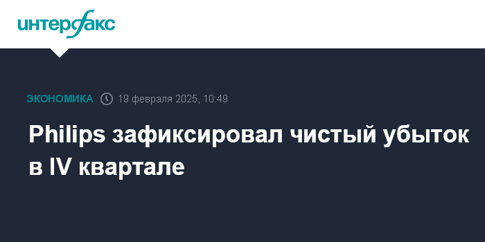 Москва. 19 февраля. INTERFAX.RU - Нидерландская Royal Philips NV, выпускающая потребительские товары и медицинское оборудование, в четвертом квартале 2024 года зафиксировала чистый убыток и сократила выручку.