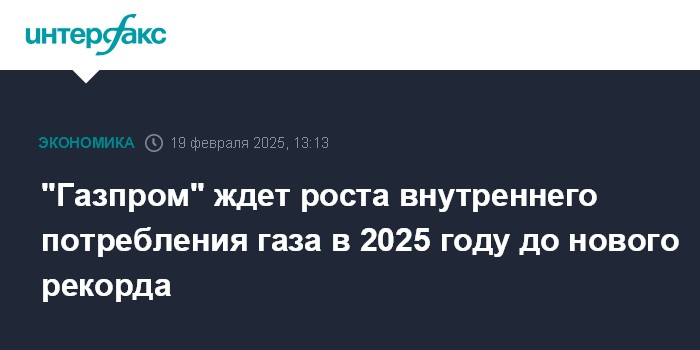 Москва. 19 февраля. INTERFAX.RU - Потребление газа в России в 2025 году превысит показатель прошлого года, сообщил журналистам генеральный директор ООО "Газпром межрегионгаз" Сергей Густов.