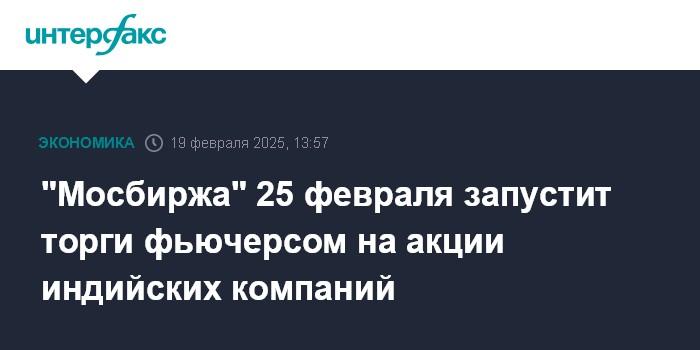 "Мосбиржа" 25 февраля запустит торги фьючерсом на акции индийских компаний