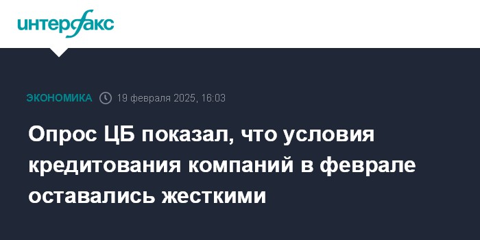 Опрос ЦБ показал, что условия кредитования компаний в феврале оставались жесткими