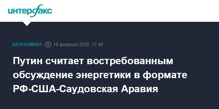 Путин считает востребованным обсуждение энергетики в формате РФ-США-Саудовская Аравия