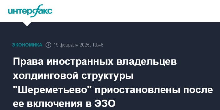 Права иностранных владельцев холдинговой структуры "Шереметьево" приостановлены после ее включения в ЭЗО