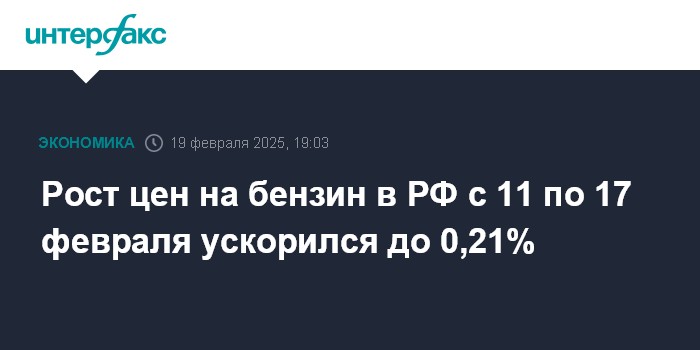 Рост цен на бензин в РФ с 11 по 17 февраля ускорился до 0,21%