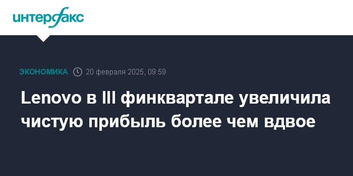 Москва. 20 февраля. INTERFAX.RU - Китайская Lenovo Group Ltd, крупнейший мировой производитель персональных компьютеров, в третьем финансовом квартале увеличила чистую прибыль более чем вдвое относительно того же периода предыдущего года.