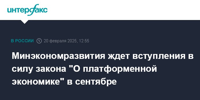 Минэкономразвития ждет вступления в силу закона "О платформенной экономике" в сентябре