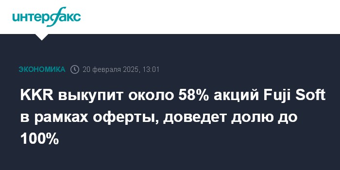 Как сообщает KKR, инвесткомпания сможет приобрести 57,92% акций Fuji Soft в рамках двухэтапной оферты, вторая фаза которой завершится 27 февраля. Приобретение такой доли позволяет KKR запустить процедуру squeeze out (принудительный выкуп оставшихся акций). После ее завершения инвесткомпания будет владеть 100% Fuji Soft.
