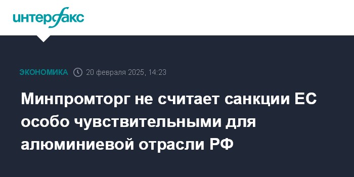 Минпромторг не считает санкции ЕС особо чувствительными для алюминиевой отрасли РФ