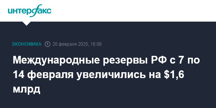 Международные резервы РФ с 7 по 14 февраля увеличились на $1,6 млрд