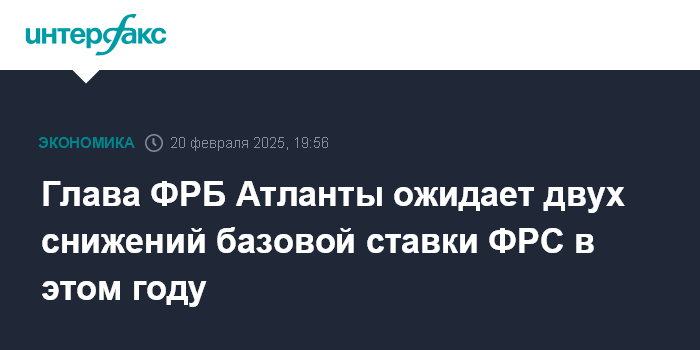 Глава ФРБ Атланты ожидает двух снижений базовой ставки ФРС в этом году