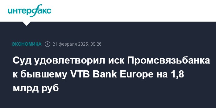 Суд удовлетворил иск Промсвязьбанка к бывшему VTB Bank Europe на 1,8 млрд руб